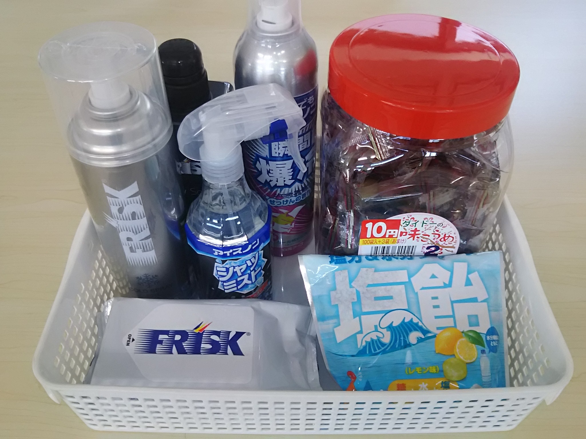 エスケイラインでは社員に声掛けするとともに、 熱中症の対策用品を設置しました♪